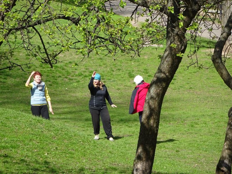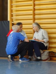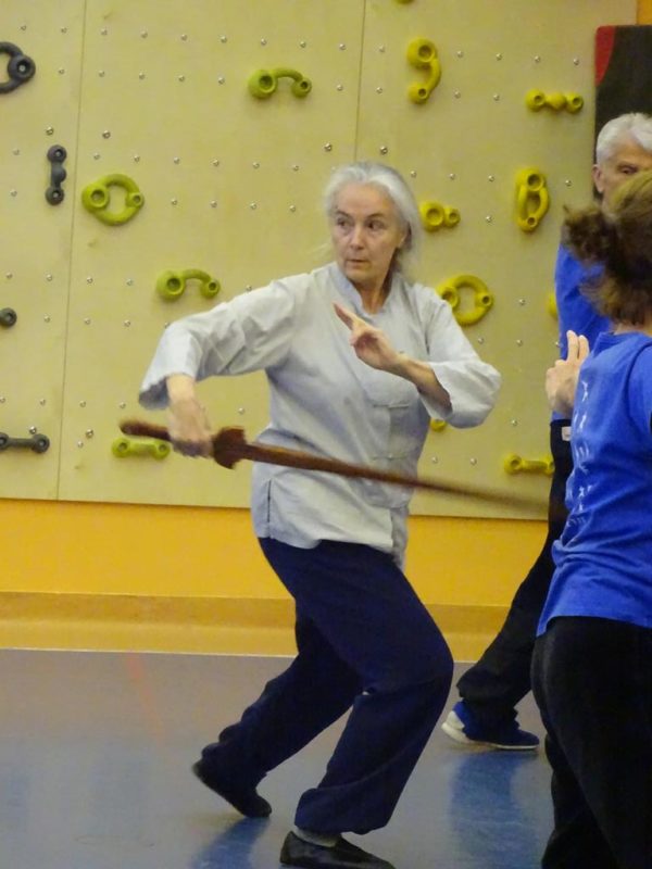 Trening był przebogaty. Była i forma ręczna – z naciskiem na pierwszą i trzecią część, była forma z mieczem (na razie mam swoją z przekazu Hao, więc tylko się przyglądałem) i w końcu były też pchające dłonie, których uczyła Marianne. Niestety, tylko wybranych uczniów od poziomu żółtego wzwyż (tak – w Fundacji poziomy określają kolorami), tak więc tylko z daleka przyglądałem się z zazdrością.
