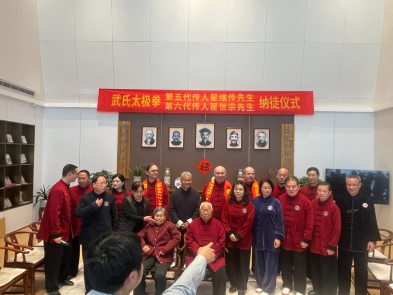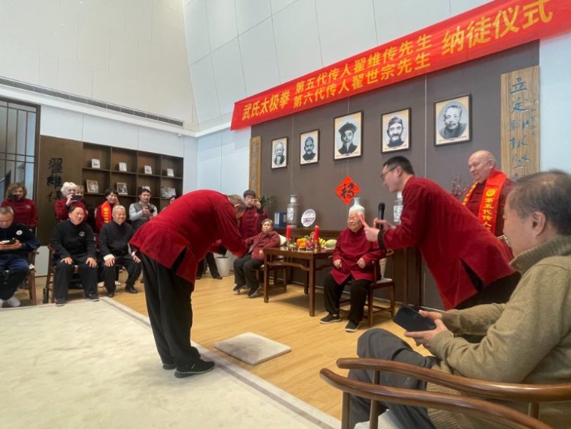 Pierwotna wersja ceremoniału wyglądała następująco. Tego dnia, oprócz nas, Baishi mieli dostąpić jeszcze trzej miejscowi. Z tą tylko różnicą, że oni w stosunku do młodszego mistrza Zhai Shi Zonga, a my przed jego ojcem, Zhai Wei Chuanem. Więc oni pierwsi, potem my… Ukłony mieliśmy składać trójkami (niczym żołnierze z Westerplatte) i kłaniać się trzy razy. Potem jeszcze tylko zaoferowanie mistrzowi herbaty i jesteśmy wolni. Dwie rzeczy mi się trochę nie zgadzały. Po pierwsze, dlaczego mamy się kłaniać trzy razy — wszak sama nazwa wskazuje dziewięć ukłonów (ba – to dziewięć). Po drugie mówienie — ja miałem powiedzieć po chińsku: „mistrzu, skosztuj herbaty” — to brzmiało jak pułapka, wątpię, żebym to powiedział prawidłowo. Pomimo tego, że kułem ten prosty zwrot przez dłuższy czas, translator był jednak nieubłagany… ciągle plotłem jakieś androny. Postanowiłem więc, że coś wybełkoczę, mając nadzieję, że wyobraźnia słuchaczy dopisze tam odpowiednie dźwięki.