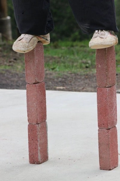I tak sobie zawijamy z Kubą, a tu przychodzi Robert i stawia koło nas drewniane cegły. I niby to żadne mecyje, bo przecież kilka razy już na takowych ćwiczyłem, ale tym razem Robert postawił je na sztorc. Zawsze się obawiałem, że nie pocentruję sobie, gdyż większość treningu spędzę na próbach wejścia na te konstrukcje. Na Kazimierzu widziałem jednak kilka studentek na niewiele niższych obcasach, więc Wstyd było nie spróbować. A może to nie były studentki?