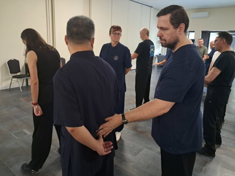 Warsztaty z mistrzem trwają, lekko nie jest. Ponad pięć godzin nauki dziennie. Na razie generuje to multum notatek, masę nagrań i Mętlik w głowie. Trzeba zapamiętać masę rzeczy, bo mistrz Zhai opowiada i pokazuje, co jest ważne. A ja nie umiem zapamiętać wszystkiego, co jest kluczowe, tyle jest tego. Jak to napisał nasz wieszcz narodowy: „i choćby przyszło tysiąc atletów i każdy zjadłby tysiąc kotletów, to nie spamięta…”. Za każdym razem, kiedy usłyszę coś, co wydaje mi się kluczowe, staram się zapamiętać. Za chwilę jednak pojawia się coś równie ważnego. Ja to już czasami mam takie odczucie, że jak on nie przestanie mówić, to mi się rejestr przeleje… A to jeszcze druga połowa zabawy przed nami.