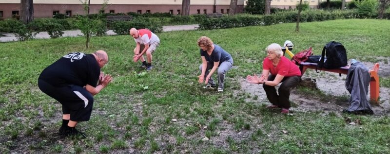 Kahuna właściwie nie zrobiła żadnego konkretnego zestawu Qi Gong, krótkie spotkanie było wypełnione ćwiczeniami na kręgosłup pochodzącymi z różnych zestawów, ale chyba przede wszystkim z podstawowych ćwiczeń starego stylu. Było ok. Szkoda tylko, że w tym roku tak mało osób się pojawia. Ostatnio, kiedy Fundacja prowadziła tu zajęcia, dziedziniec był wypełniony. Ale dobra, czasy mamy teraz nienormalne, i jest jak jest.