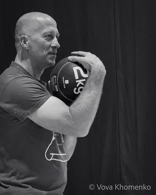 W pierwszej części ćwiczyliśmy Kulę Tai Chi. Z przyjemnością patrzyłem na osoby zupełnie początkujące, które się za to zabrały. Trening kuli, to jest coś, co pasuje każdemu ćwiczącemu, ba – uważam, że nie trzeba praktykować Tai Chi, by ćwiczyć Kulę Tai Chi… to może być samodzielna praktyka, choć oczywiście, w połączeniu z takim systemem jak Tai Chi, daje większy efekt. Było świetnie, w końcu poćwiczyłem te rotacje, od których stroniłem, bo uważałem, że ich nie umiem. Ćwiczyłem z lekką piłką, z ciężką piłką z moją glinianą kulą. Dwie i pół godziny minęło jak dobra randka.