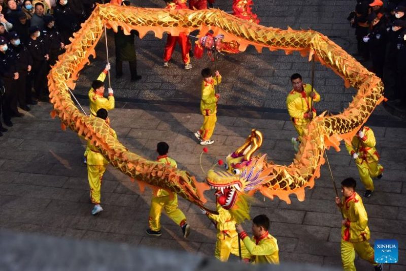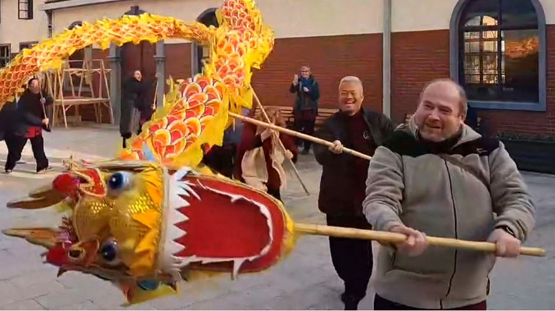 Czym jest taniec smoka? To taka ludowa zabawa, performers, zwyczaj. Choć może nie do końca, bo można tam znaleźć jakieś elementy rytuału. Polega to na tym, że grupa ludzi „animuje” smoka, którego tułów umieszczono na kijach. Biegając i machając kijami ożywiają smoka.